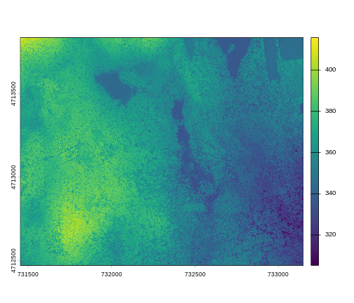 terrapackage. - Plot a raster file in R using the